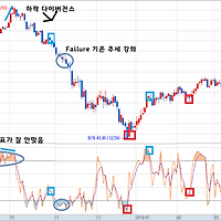 주가가 하향추세일 때, RSI가 직전 최저 수준의 돌파를 실패하고 직전 고점(저항)을 상향돌파 -> 강세 (매수)