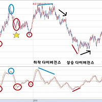 동그라미는 지지와 저항에서의 매수 매도, 네모는 과매수 과매도에서의 매수 매도, 직선은 다이버전스를 나타낸다. RSI 지지, 저항은 추세상황에서 상당히 잘 들어맞고 다른 지표와는 다르게 과매수 과매도 또한 추세장에서 어느정도 통한다.(박스권에서 가장 잘통함)